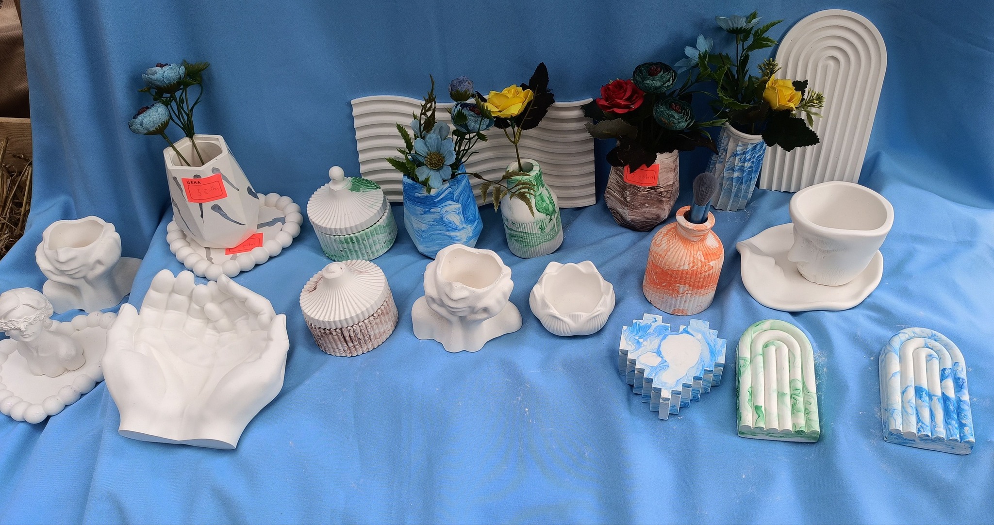 ნაქსოვი კალათები, ეპოქსიდისგან დამზადებული სხვადასხვა დეკორატიული ნივთები, სუვენირები